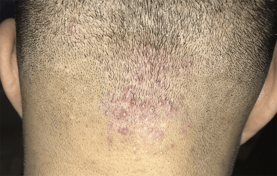 Lichen planopilaris (LPP) affects the scalp and hair. It is a form of lichen planus, an inflammatory condition affecting the skin and mucous membranes. Symptoms may include scaly skin and redness around hair follicles, bald patches, and pain, burning, or itching on the scalp. Tiny, red bumps (papules) may appear around hair clusters.