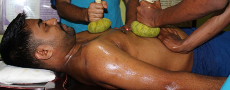 This is a special type of Pinda Swedam, and there by the Bolus is specially prepared with Ingredients like Mamsa (Flesh), here Swedana or Fomentation is made with the help of this Pottali (Bolus). It is done in such a way that the Bolus is made to have sudden contact over each adjacent part of the body for a fraction of seconds, so that ample heat is transferred to patient’s body. Mamsa Pinda swedam (Mamsa kizhi) is a specialized therapy which is performed for the diseases related to Bones, muscles and nerves and skin nourishment. The Swedana karma or sudation therapy is given by using a bolus which is prepared by the flesh of goat/Sheep/rabbit and processed with medicinal oil along with herbal medicines is called as Mamsa Pinda swedam or Mamsa kizhi.