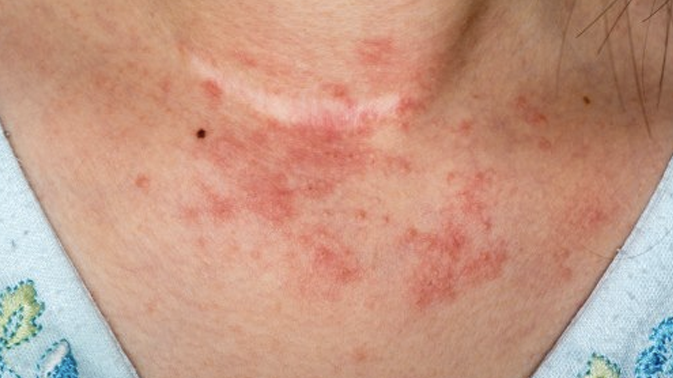 Contact dermatitis is a type of eczema triggered by contact with a particular substance. Eczema is the name for a group of conditions that cause skin to become dry and irritated. Contact dermatitis usually improves or clears up completely if the substance causing the problem is identified and avoided. Treatments are also available to help ease the symptoms. Contact dermatitis causes the skin to become itchy, blistered, dry and cracked. Lighter skin can become red, and darker skin can become dark brown, purple, or grey. This reaction usually occurs within a few hours or days of exposure to an irritant or allergen. Symptoms can affect any part of the body but most commonly the hands and face.