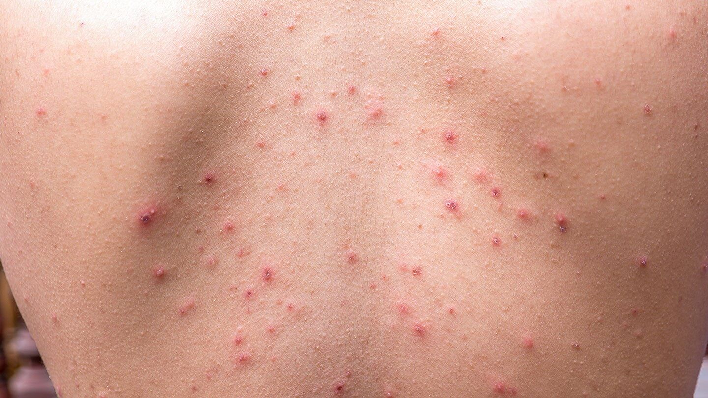 Acne vulgaris is a skin condition that occurs when hair follicles are blocked with dead skin cells, bacteria, and oil (sebum). The blocked follicles cause blemishes on the skin, including pimples, blackheads, whiteheads, and cysts. Also known as common acne, one of its main causes is hormones, especially around puberty.